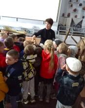 Загадывая старинные загадки, методист музея приоткрыла ребятам тайну глубокой старины, поведала о предметах быта, одежде, традициях наших предков, рассказала о том, как в старые времена люди изготавливали себе одежду из льна. Столетиями лён, как и хлеб, был для крестьян важнейшей сельскохозяйственной культурой. Лен выращивать нелегко. Очень трудоемким был весь этот процесс, много времени нужно было затратить, чтобы из семени льна получилась рубаха. Ребята узнали, как появляется одежда, посмотрев мультфильм по рассказу К.Д. Ушинского «Как рубашка в поле выросла». Детям наглядно представили полный цикл работ, связанных с возделыванием льна, обработкой волокна, изготовлением ткани, отбеливанием и пошивом одежды. Дети с интересом рассматривали музейные экспонаты, с помощью которых когда-то обрабатывали лён, пряли пряжу, ткали полотно, а также сами семена льна, из которых не только выращивают растение, но и получают целебное масло. Сложный многоступенчатый процесс превращения растения в одежду глубоко вошел в народную память, напоминая о себе пословицами, поговорками и песнями. О них поговорили в заключении мероприятия.