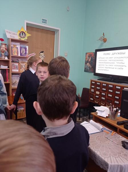 В ходе мероприятия ребята познакомились с историей возникновения праздника и его понятиях, о необходимости толерантности в международных отношениях, особенно в нашей многонациональной стране, о терпимости в отношениях между близкими людьми, в семье, на учебе. Ребятам было предложено с помощью презентации узнать традиции народов, их кухню. После просмотра мультфильма «Ежик должен быть колючим?» обсудили ситуацию: всегда ли ежик должен быть колючим» или он может быть каким- то другим. Завершилось мероприятие «Поясом дружбы». Ребята образовали круг и хором произнесли слова: «Люди на свет рождаются разными: непохожими, своеобразными. Чтобы других ты смог понимать, нужно терпенье в себе воспитать».