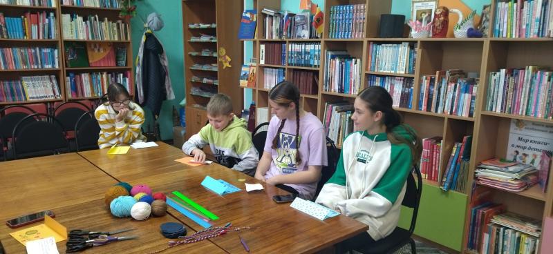 Вместе с почитайками мы подобно мастерицам прежних лет освоили технику плетения круглых поясочков. Из разноцветных ниток с помощью картонной заготовки мы создали уникальные, не похожие друг на друга, текстильные украшения на руку. Этот процесс захватил ребят и они выразили желание создать такие поясочки для своих близких.