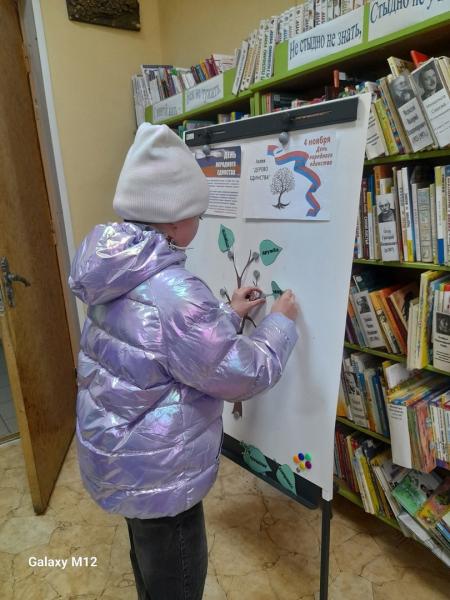 5 ноября на абонементе детской библиотеки прошла акция "Дерево единства" посвященная празднику Дню народного единства.