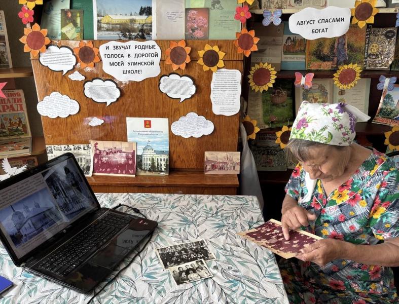 В рамках проекта "Страницы истории Улинской школы" в Улинской библиотеке проходит акция "Мы родом из Улинской школы", в ходе которой жители деревни делятся своими воспоминаниями, фотографиями, грамотами, полученными в Улинской школе. Своими воспоминаниями поделилась Сергеева Людмила Трофимовна. Она принесла 3 больших альбома с фотографиями, одну из которых подарила Улинской библиотеке. Людмила Трофимовна рассказала о своем детстве, учебе в Улинской школе, любимых учителях и своей судьбе. С большим интересом посмотрела презентации "История Улинской школы" и "Судьба учителя", дополняла и комментировала слайды.