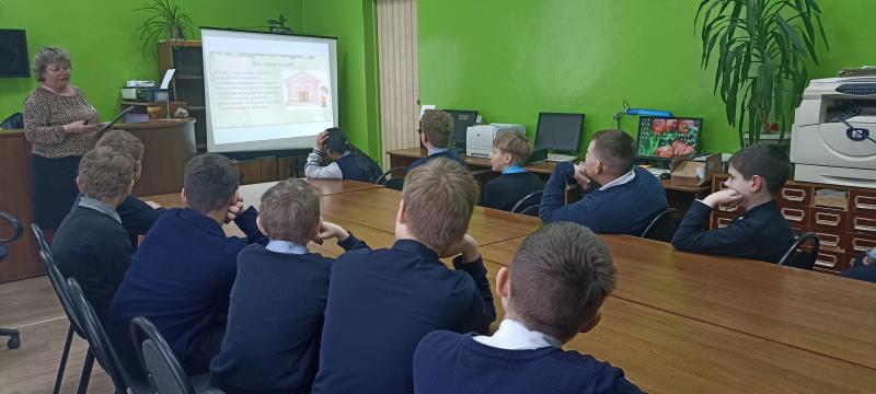 Ребята узнали как в 1895-м году по указу императора Николая II музей создавался, как формировались его коллекции и где сегодня расположены его филиалы. Особе внимание школьников библиотекарь обратила на известнейшие полотна русских художников, демонстрирующиеся в музее.