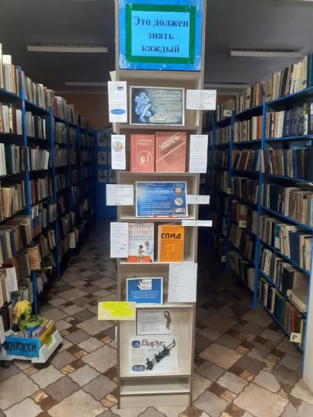 В рамках Всемирного дня борьбы со СПИДом в библиотеке оформлена информационная книжная выставка «Это должен знать каждый». На выставке представлены книги, буклеты, брошюры, памятки, дающие информацию, что такое ВИЧ-инфекция, чем отличается от СПИДа, о путях заражения ВИЧ и возможности инфицирования, о синдромах и группах риска, профилактике ВИЧ инфекции.
