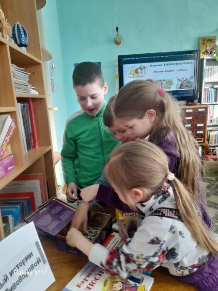 Герои рассказов Ирины Пивоваровой приготовили волшебную шкатулку для ребят, но чтобы ее открыть детям нужно было выполнить задания: "Наоборт", "Волшебная палочка", собрать картину, отгадать загадки. Юные читатели отлично справились с заданиями и открыли волшебную шкатулку в которой был приз. В завершении мероприятия ребята посмотрели мультфильм "Жирафа и очки".