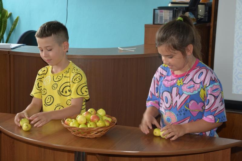 Ведущая рассказала ребятам о том, что на Руси с 14 по 29 августа наступает время праздников трех Спасов: «Спас на воде» – Медовый спас, «Спас на горе» – Яблочный спас, «Спас на полотне» – Ореховый спас. В эти дни люди собирали многочисленные дары природы, запасая их на долгую зиму. Спасы праздновали еще и как прощание с летом. Ребята узнали об истории и традициях празднования этих дней, а затем разделившись на две команды, соревновались, кто больше назовёт яблочных качеств, с весёлым азартом собирали нектар – ложкой, зажатой во рту, нужно было собрать фасоль, строили пирамидку из яблок, искали орешки в рисовой крупе, проходили лабиринты и отгадывали ребусы. Мероприятие получилось веселым и красочным. Покидая библиотеку, каждый участник мероприятия взял с собой частичку праздника, а самое главное - хорошее настроение.