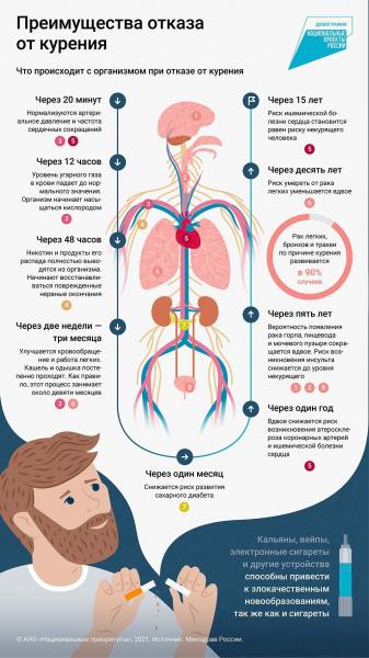 • По данным официальной статистики, за годы действия государственной политики, направленной на защиту граждан от табачного дыма и последствий потребления табака, распространенность курения в стране неуклонно снижается, правда, за последние годы наблюдается замедление темпов снижения распространенности курения и прирост потребления иной никотинсодержащей продукции: вейпов, электронных сигарет, продуктов нагревания табака, кальянов и бездымного табака.
