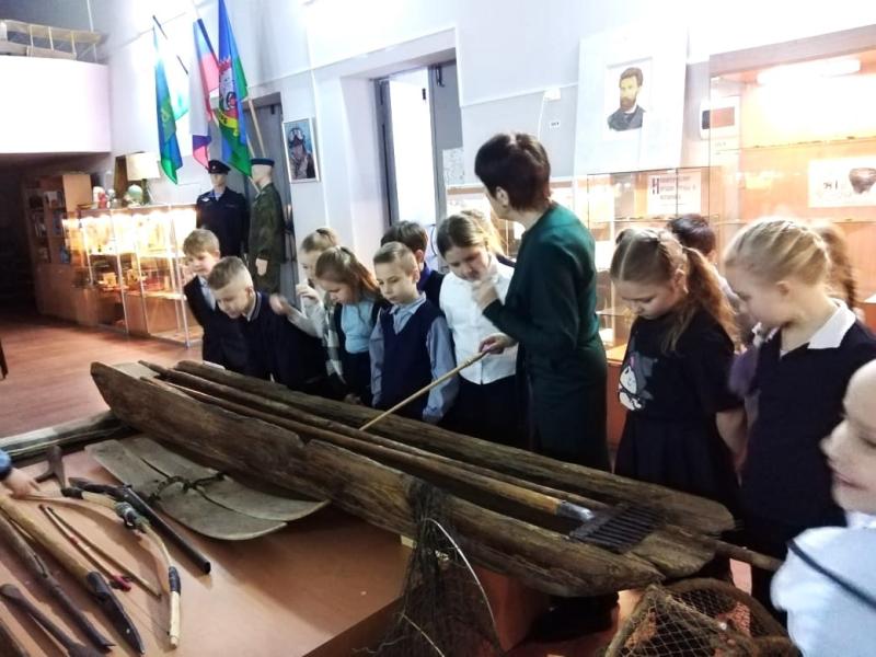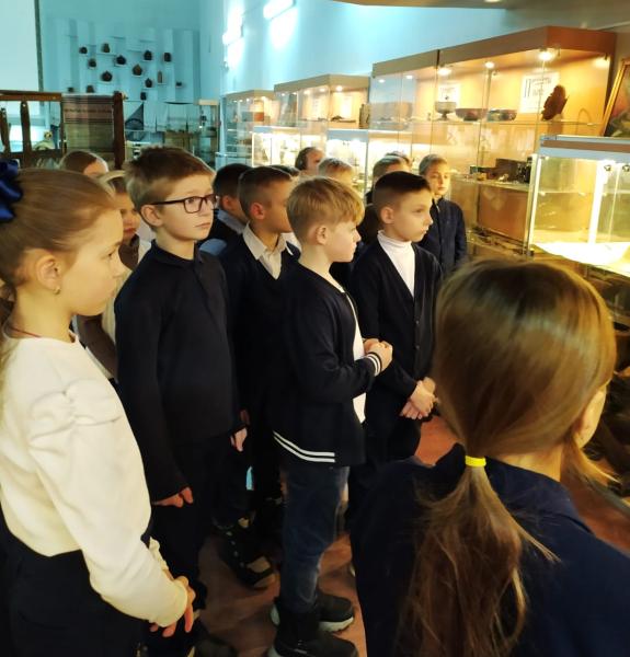 Ребята ознакомились с историей освоения нашей местности древними финнами и балтами, основными занятиями которых были рыболовство и охота, а после заселения в 8 веке н.э. славянских племён кривичей появилось земледелие. Рассказ сопровождался демонстрацией экспонатов музея, относящихся к тому периоду, отдельных предметов быта.