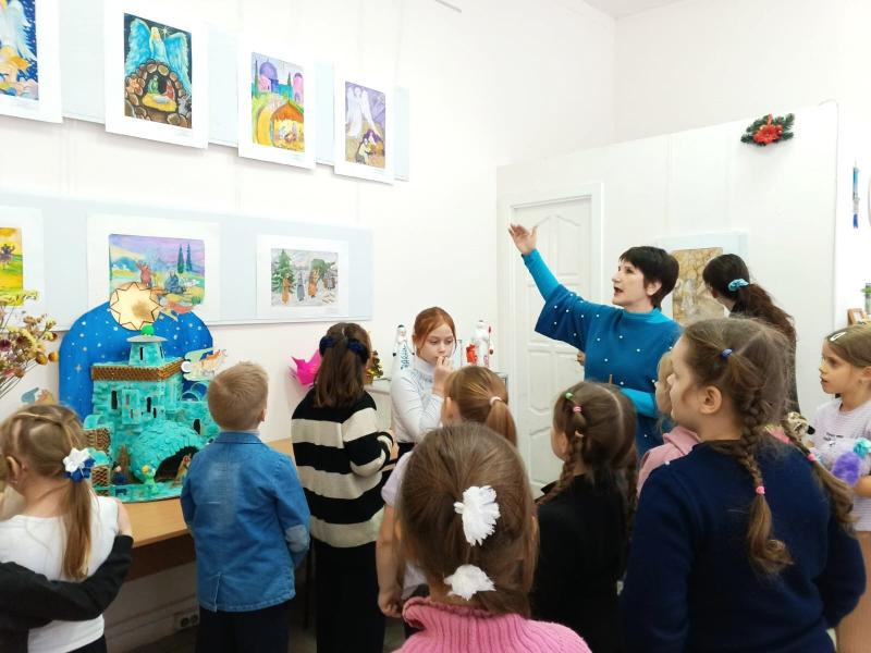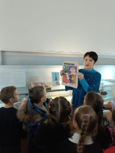 22 января выставку посетили кружковцы Дома детского творчества. Также они смогли познакомится и с новогодними выставками «Волшебная палитра» и «Ёлочные игрушки наших предков», экспозиция которых завершается.