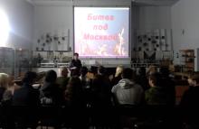 В тяжёлых условиях проходило контрнаступление наших войск о подвиге подольских курсантов, мужестве и героизме 28 героев - панфиловцев, защищавших разъезд Дубосеково под Волоколамском. Рассказ методиста сопровождался показом презентации, содержащей уникальные кадры хроники тех событий. Подвиг защитников столицы стал символом великого мужества, несгибаемой силы духа нашего народа, его патриотизма и любви к Отечеству. За мужество и героизм участников битвы была учреждена медаль «За оборону Москвы», а позднее, в 1965 году, Москве присвоено звание «Города-героя».