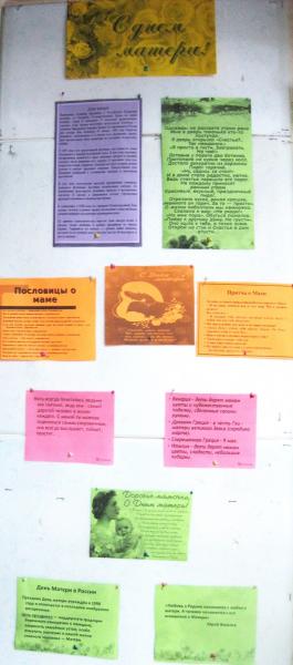 В Севостьяновской библиотеке прошла праздничная программа «Мама моя, нежность моя». После краткой истории появления праздника, гостей ждала литературная викторина по произведениям о матерях. Множество теплых слов с пожеланиями счастья и здоровья прозвучало в этот вечер в адрес всех присутствующих мам. Лучшие из поздравлений стали частью стенда «С днём матери!».