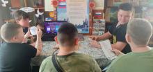 Вслед за тем состоялась игра «Штаб героев», знакомившая с военными специальностями и выдающимися героями. Участники прошли станции «Связисты», «Шифровальщики», «Механики», «Переводчики», «Полководцы», где разгадывали шифры и переводили трофейные документы, шифровывали секретные послания, изучали технику ВОВ, вспоминали подвиги полководцев.