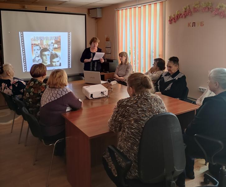 21 ноября сотрудники библиотеки провели День кино для участниц клуба "Надежда" Комплексного центра социального обслуживания населения. На этот раз библиотекари предложили собравшимся отметить юбилеи любимых советских фильмов, со дня создания которых прошло от 35 до 60 лет. «Иван Васильевич меняет профессию», «Белые росы», «Собачье сердце», «Я шагаю по Москве» - пересматриваются зрителями по многу раз, но от этого не теряют своей прелести и увлекательности. В ходе мероприятия мы вспомнили сюжеты и популярные фразы героев, поговорили об актуальности фильмов сегодня, а также узнали о некоторых любопытных фактах из истории их создания.