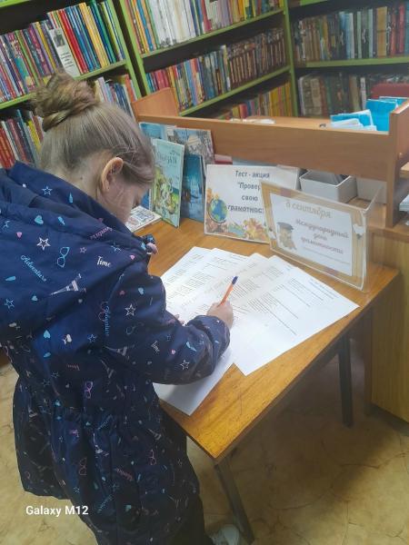 В этот день на абонементе Детской библиотеке ее юные посетители стали участниками тест-акции «Проверь свою грамотность». Им предстояло ответить на вопросы каверзного теста и вспомнить грамматику русского языка. Ребята удачно справились с заданием, а если и были какие-либо пробелы в грамотности, то они восполнили их, узнав правильные ответы в представленных библиотекой книгах.