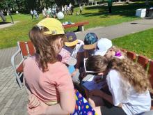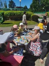 Любой желающий сможет полистать журналы, удобно расположившись на скамейках в тени деревьев. Детям будут предложены раскраски, цветные карандаши, настольные игры. А также можно будет принять участие в мероприятиях, проводимых работниками библиотеки.  И первыми пользователями стали воспитанники летнего лагеря ДДТ. Для них прошла спортивная игра "Star-Старт". Переде началом соревнований ребята вспоминали и перечисляли какие виды спорта они знают. Затем разделились на две команды и соревновались в эстафетах:"Палочки - выручалочки», «Кенгуру», «Бег с мячом», «Передай мяч», «Прыжки с гантелями».  Все участники справлялись хорошо и получили заряд бодрости и задора, хорошее настроение и удовольствие от движения!  Также все желающие могли полистать журналы, почитать книги, разгадать кроссворды, поиграть в настольные игры.