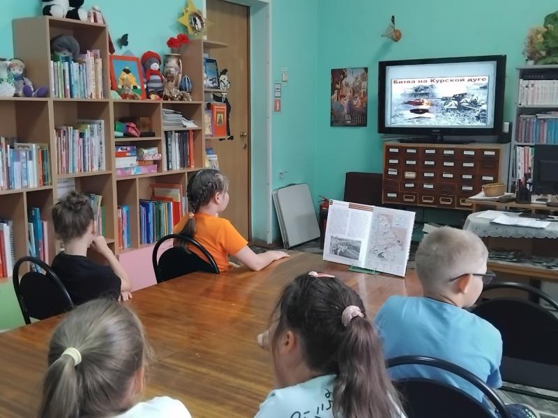 История хранит события, навечно оставшиеся в людской памяти. Всего два слова: Курская дуга, а какая могучая суть в них заключена! 5 августа ребята из лагеря ДДТ приняли участие в патриотическом часе «Поле русской славы. Курская дуга». Библиотекарь рассказала присутствующим о беспримерном мужестве и отваге советских воинов у села Прохоровка, где разыгралось самое масштабное танковое сражение Великой Отечественной войны. Участники мероприятия узнали что историческая битва продолжалась 50 дней и ночей: с 5 июля по 23 августа 1943 года и положила начало коренному перелому хода Великой Отечественной войны. По жестокости и упорству эта битва не имела себе равных. Закрепить полученные знания присутствующим помогли викторина и филворд о Курской битве.