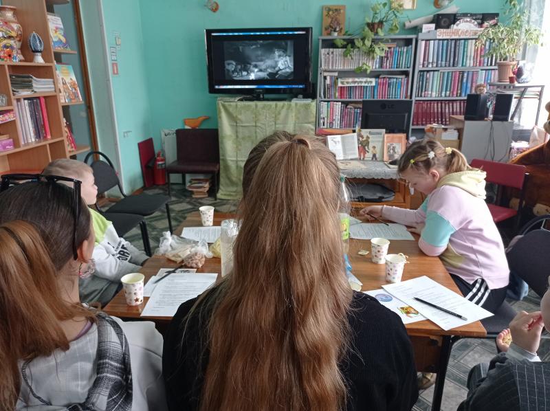 На очередной встрече, в рамках проекта "«Литературная классика на экране и в музыке » , члены кружка «Почитайки» приняли участие в заключительной игре учебного года «Путешествие в Книгоград». Ребятам предлагалось назвать имена величайших русских писателей, с которыми они знакомились, рассмотрев их портреты и вспомнить некоторые факты их биографии. Некоторые ребята узнавали авторов не по портрету, а по сопутствующей информации, приведённой в беседе. Например, Антона Павловича Чехова несколько человек узнали по его псевдониму «Чехонте». Ребята искали названия рассказов в филвордах. Вспоминали фильмы, которые смотрели и отвечали на вопросы викторины. С удовольствием пересматривали отрывки из фильмов «И вот пришел Бумбо», «Кавказский пленник», «Жеребенок», «Белолобый». Всё это, безусловно, говорит о том, что ребята не только запомнили эти произведения, но и биографии людей, их написавших. В конце встречи разыгрывались библионики, которые ребята зарабатывали в течении года.