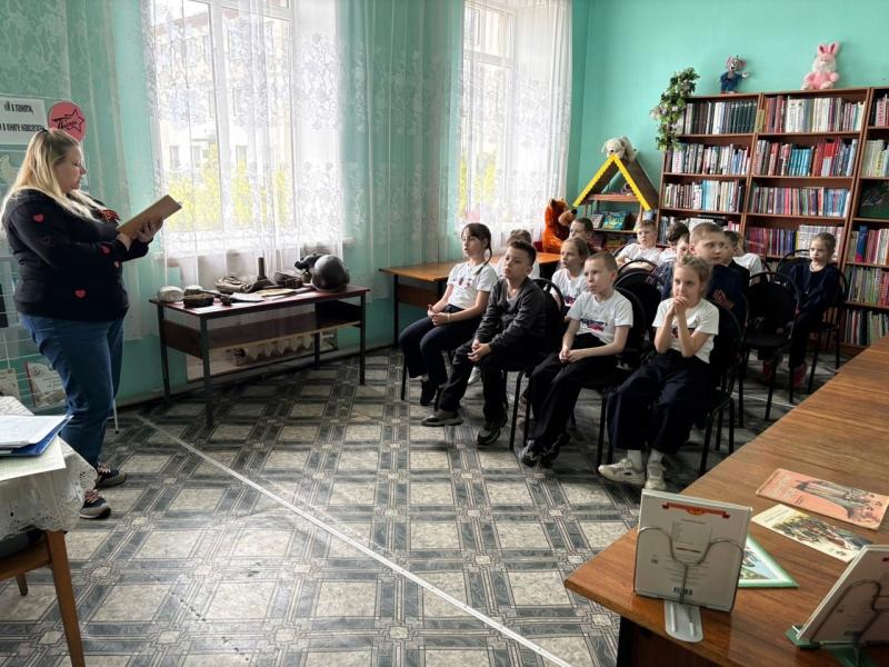 Участниками акции стали ученики 2в класса СОШ№1. Библиотекарь в своём рассказе поведала детям о том страшном времени, о мужестве, героизме советских солдат, проявленных в борьбе за освобождение нашей Родины. Затем ребятам был прочитан рассказ Сергея Алексеева "Первая колонна"
