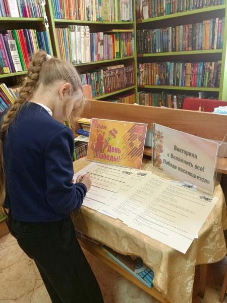 6 и 7 мая на абонементе прошла викторина "Вспомнить всё! Победе посвящается", посвященная 80-летию Победы в Великой Отечественной войне. Викторина состояла из различных вопросов в которых нужно было выбрать правильный ответ.Все участники проявили свои знания, а также узнали много нового. За участие в викторине юные читатели получали призы.
