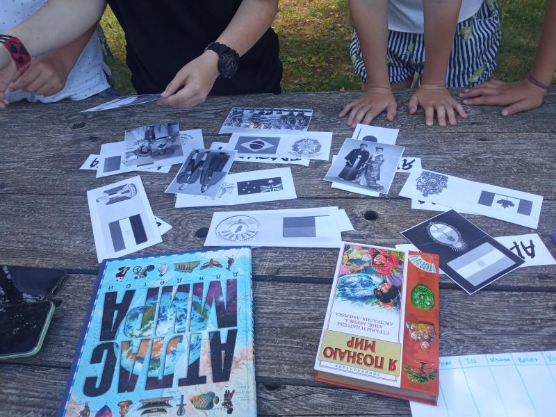 Как можно путешествовать по странам мира, не покидая своего места? Конечно же, совершить его при помощи библиоглобуса. Так юные читатели приняли участие в «Большом путешествии». Игроками были представлены изображения гербов и флагов, фото национальных костюмов и карточки с названием стран. Ознакомившись с данной информацией, ребята распределили её по странам: Мексика, Аргентина, Бразилия, Мадагаскар, Египет, Австралия, Канада и Япония. Справившись с этим заданием, ответили на вопросы викторины. Дети младшего возраста получили другой задание: нарисовать медведь, который обитает в российских лесах.