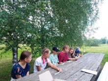 Как узнать о месте, в котором ты проживаешь, о его истории? Одним из способов является пешие прогулки по данной местности. Другой способ - совершить такую прогулку виртуально. Вот такую виртуальную прогулку под названием «Путешествие по родному краю» совершили наши читатели. Просмотрев фотографии, называли достопримечательности деревни Бенцы, получили краткую историческую справку о ней. Вспомнили растения и животных, обитающих в окрестностях деревни. Используя телефон, узнали название бабочки. Дали названия улицам. На творческом этапе путешествия нарисовали герб деревни и дом, в котором проживают. В завершении мероприятия дети получили небольшое домашнее задание: сфотографировать различные местечки деревни. В последствии данные снимки будут использованы в проведении викторины.
