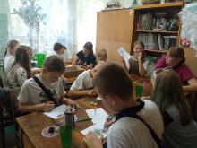 Дети были поделены на команды с помощью жеребьёвки. После прохождения каждого испытания результаты вписывались в турнирную таблицу. И первым заданием было придумать девиз, эмблему команды, а также выбрать капитана. На первой станции «Цепочка слов» нужно было вписать буквы вместо пропусков так, чтобы они являлись окончанием предыдущего слова и началом следующего. Следующая станция – «Конкурс капитанов». Им предлагалось написать диктант не простой, а цифровой. Прослушав утверждения, капитаны писали на листе бумаги цифру 1, если согласны, не согласны – цифру 0. Задание на третьей станции «Отгадай слово»: образовать из двух слов новое. На четвёртой «Лишнее слово» игроки, внимательно посмотрев на ряды слов, выяснили, как они между собой связаны и назвали лишнее. На станции «Собери пословицу» правильно соединили пословицы и поговорки. Не все ребусы на последней станции «Головоломка» оказались под силу ребятам. Но не смотря на это, дети ушли домой в приподнятом настроении.