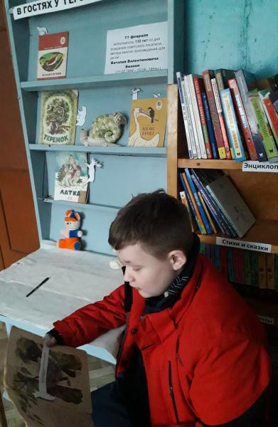 В  библиотеке этому событию посвятили книжную выставку-загадку "В гостях у героев Виталия Бианки". Библиотекарь предложила всем посетителям принять участие в книжной игре. В каждой книге находилась закладка с загадкой, ответ на которую можно было найти в книге. Кроме участия в викторине каждому читателю предлагалось прочесть вслух понравившийся отрывок или рассказать о наиболее любимой книге этого автора.