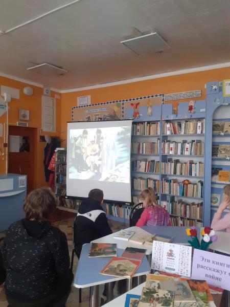 В библиотеке провели обзор книг на военную тематику "Эти книги нам расскажут о войне". Также ребята зачитывали отрывки из знакомых произведений. Посмотрели мультфильм "Солдатская сказка", созданный по рассказу К. Паустовского "Похождения жука- носорога".
