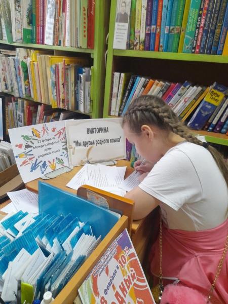 21 февраля в рамках Международного дня родного языка на абонементе для всех желающих прошла викторина "Мы друзья родного языка". Юные читатели активно приняли участие в викторине и получили сладкие призы.