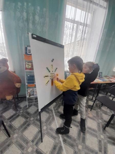 17 февраля для детей кружка «Книгаренок» прошел час развлечений "Дружба -это ты и я". Ребята познакомились с художественной литературой о дружбе С. Михалкова «Песенка друзей», В. Сутеева «Яблоко», Агния Барто "Мой друг", показали инсценировку сказки В.Сутеева «Под грибом». Играли в игры "Да-да-да, нет-нет-нет",«Друг к дружке». В конце мероприятия вместе назвали правила, которые помогают сохранить дружбу и собрали цветок дружбы. Потом все вместе посмотрели мультфильм «Самый большой друг» .