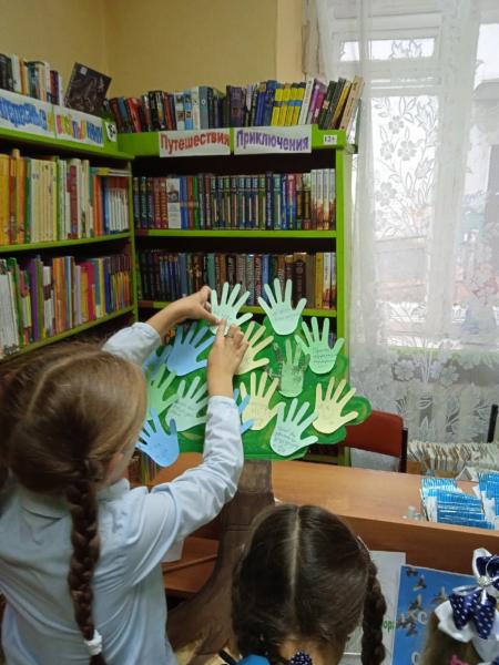 -В Детской библиотеке состоялась акция "Наш мир без террора". Для юных посетителей библиотеки прошла беседа, после которой они оставляли свои пожелания о мире и добре на Дереве желаний. На память участникам раздали закладки и памятки о поведении в случае возникновения опасной ситуации.