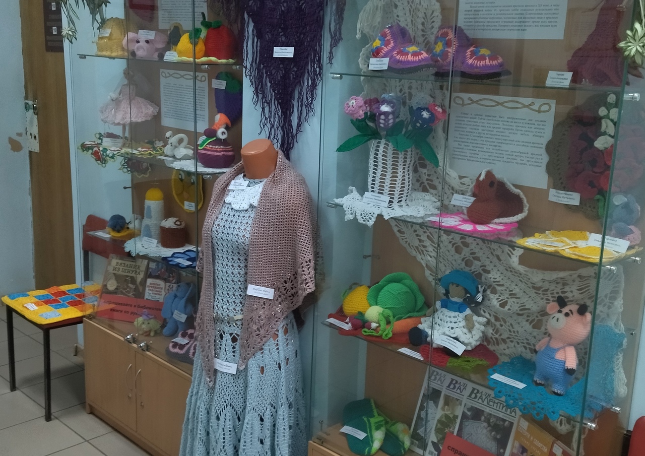 Новая выставка под таким название оформлена в фойе Центральной библиотеки. Посвящена она удивительному празднику - Дню вязания крючком. Это творческое хобби считают любимым множество рукодельниц по всему миру.