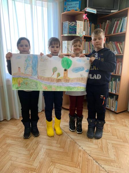 Говорили с ребятами об огромном значении воды в жизни человека, о том, что вода занимает 2/3 поверхности земного шара, что человек и животные почти на 2/3 состоят из воды и о множестве других занимательных фактах. Затем, ребята отвечали на вопросы викторины «Что мы знаем о воде», отгадывали загадки, а после все вместе рисовали.