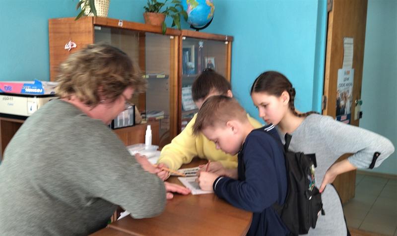 Однако, для начала игроки случайным образом разделились на три команды. Затем им выдали маршрутные листы и квест начался. Семь конкурсных испытаний ожидало ребят в библиотечных помещениях. За каждое они получали баллы и одно из слов фразы военных лет - "Наше дело правое, враг будет разбит, победа будет за нами".