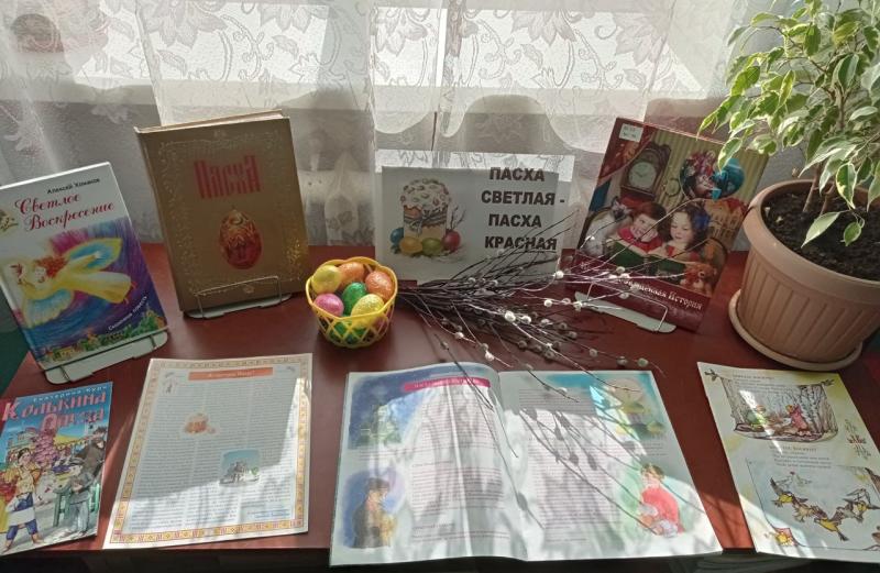 -"Пасха Светлая - Пасха Красная", представленная вниманию юных читателей в Детской библиотеке, знакомит с традициями и обычаями праздника. О его истории, о том, почему именно куличи, пасхи и крашеные яйца принято дарить друг другу в праздничные дни, вы узнаете из материалов выставки.