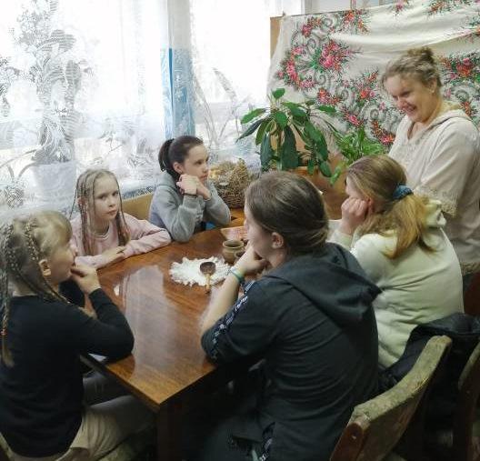 По сложившийся традиции библиосумерки были разделены на две части: первая проходила в первой половине дня, а вторая началась в 18.00. Воспитанники детского сада приняли участие в квесте «Книжкин дом», так как с половицами и поговорками знакомы мало, принято решение провести игру по знанию русских народных загадок, а также экскурсии в библиотеку, Участники игры должны были выполнить четыре задания, затем по подсказке библиотекаря найти конверт с строчками из заклинания (4 конверта – 4 строчки из заклинания), которое открывает дверь. После прохождения последнего испытания, дети прочли наизусть полностью заклинание и смогли открыть дверь, чтобы вернуться обратно в детский сад. Сделали совместную фотографию в фотозоне, предварительно прослушав краткую информацию о быте крестьян прошлого столетия. Библиоквест «Половица – цветочек, поговорка –ягодка»