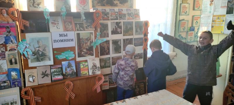 В День Победы в Улинской библиотеке открылась выставка "Мы помним". Посетители познакомились с картинами русских художников о событиях Великой Отечественной войны, с портретами солдат, а также выбрать военную литературу и даже узнать о судьбе своих родственников из книги памяти Тверской области. Для детей были подготовлены раскраски и игра-ходилка, посвящённая данному празднику.