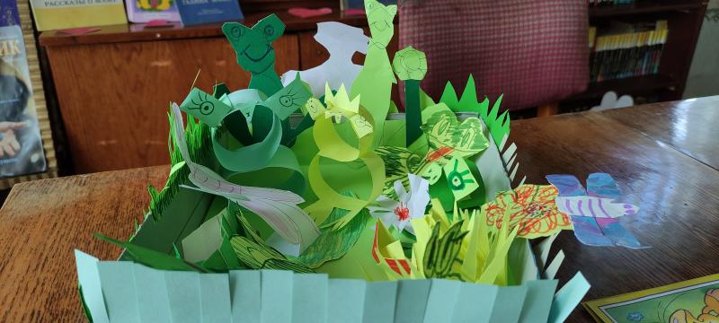13 июля в Улинской библиотеке состоялся мастер-класс "Сказка из бумаги "Царевна-лягушка". Дети послушали русскую народную сказку "Царевна-лягушка", отгадали загадки, сделали из цветной бумаги болото, вырезали лягушек, нарисовали царевну и царевича.