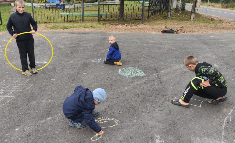 Чуть ранее ребята приняли участие в библиотечном асфальтовом вернисаже " С летом не прощаемся". Рисование на асфальте - это настоящее творчество, познание окружающего мира и развитие воображения. Ребята вспоминали тёплые денёчки, рисовали солнце, животных, библиотеку и героев любимых сказок. А еще учились играть в классики и делились впечатлениями о проведённом лете.