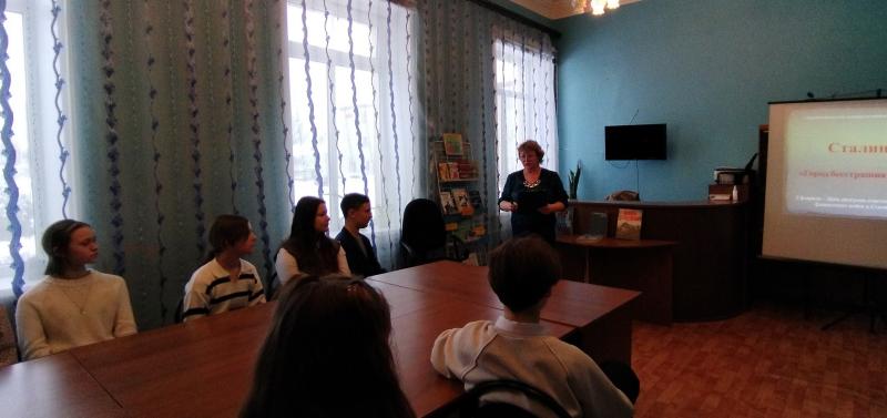 2 февраля в центральной библиотеке прошел урок мужества «Сталинград. Город бесстрашия – город солдат» для семиклассников СОШ №1. Библиотекарь рассказала школьникам о знаменитой битве с врагом за город Сталинград, ныне Волгоград.