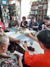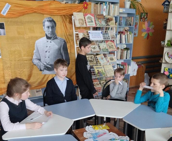 В этом году акция "Библиосумерки" в нашей библиотеке посвящена Л.Н.Толстому, которому в 2023 году исполняется 195 лет со дня рождения! «Лев Толстой. Страницы великой жизни», так назывался вечер в литературной гостиной, собравший в стенах библиотеки любителей классики. Гостей встречали герои романа "Война и мир". Дети с удовольствием отвечали на вопросы викторины, используя книжки на выставке. Взрослые ознакомились с биографией писателя, совершили онлайн - экскурсию в "Ясную поляну", посмотрели видеоролик "Живой Толстой", где можно было услышать запись голоса классика, сделанный фонографом; услышали песни времён Льва Николаевича; поучаствовали в конкурсе "Собери произведения". Все знают, что Лев Толстой открыл в Ясной Поляне школу для крестьянских детей и сам преподавал там. Для наших участников предложена для решения задачка из его "Арифметики". Гости побывали "в гостинной Софьи Андреевны(жены писателя)," где отведали её знаменитые пирожки с яблоками, узнали о "Поваренной книге", автором которой была С. Толстая. Интересными фактами из жизни писателя закончилось наша встреча.