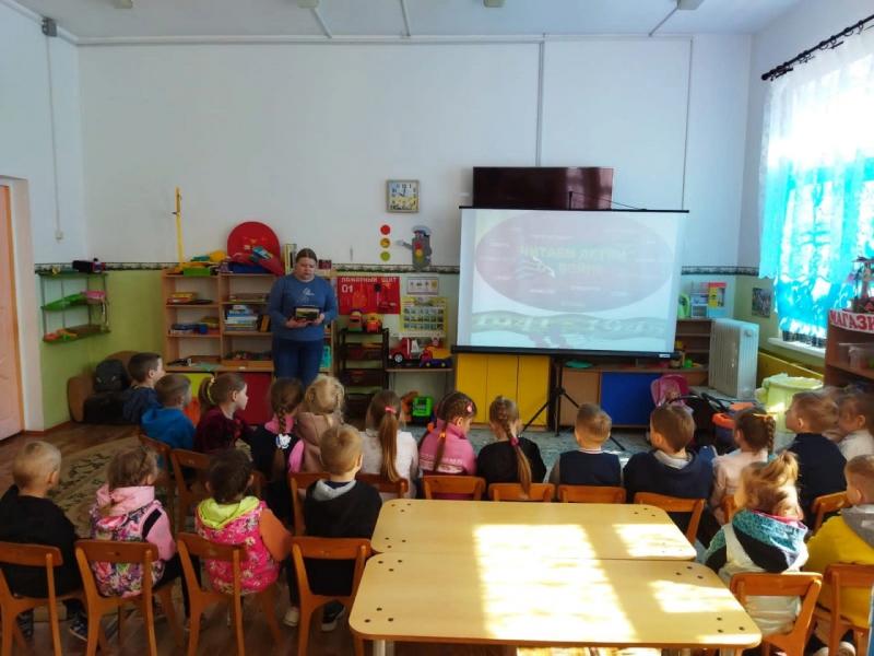 Участниками акции стали воспитанники детского сада №1 и дети кружка "Книгаренок". Библиотекарь в своём рассказе поведала детям о том страшном времени, о мужестве, героизме советских солдат, проявленных в борьбе за освобождение нашей Родины. Затем ребятам был прочитан рассказ Сергей Алексеева "Первая колонна"
