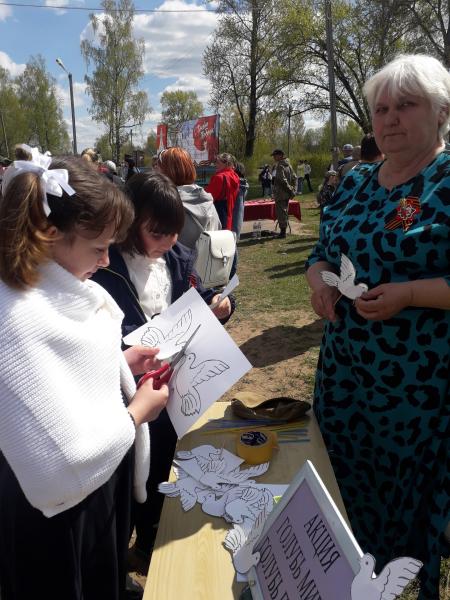 В рамках торжественных мероприятий в День Победы Староторопская библиотека провела акцию " Голубь мира-Голубь Победы" . Участникам предложили вырезать бумажного голубя и подарить прохожему со словами мира, добра и любви. Здесь же посетителям была представлена фотозона от воспитанников библиотечного кружка и выставка рисунков " Салют Победы!", подготовленная учащимися Староторопской СОШ и проживающими в отделении дома интерната для престарелых и инвалидов в п. Старая Торопа.