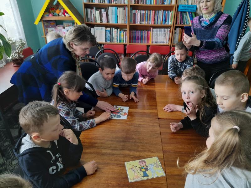 В фойе библиотеки детей встречала выставка рисунков учащихся детской школы искусств по книгам Э. Успенского. Детям загадывали загадки по картинам и конечно все герои произведений писателя были названы.