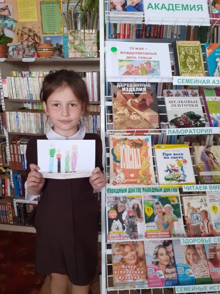 Юные пользователи нашей библиотеки нарисовали рисунки на тему "Моя семья", на которых мило улыбаются мамы, папы держат за ручки своих детей. А дети радуются окружающим их любимым людям. В библиотеке так же оформлена выставка "Семейная академия".