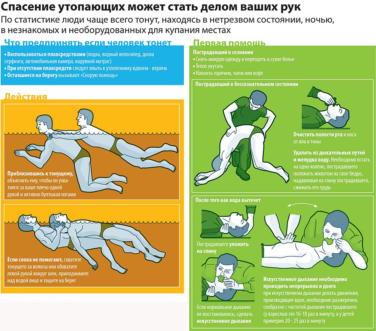 Правила оказания первой помощи в случае утопления: