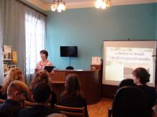Краеведческий библиотечный проект «Люби и знай свой родной край» продолжился новым мероприятием, участниками которого стали восьмиклассники одной из городских школ.