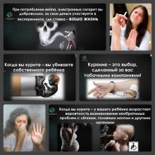 • электронные сигареты это не безобидные устройства. Вы рожали детей, кормили их и растили не для того, чтобы закачивать в их легкие более десятка веществ из кабинета химии. Вы ждете точных данных о том, насколько они вредны? Такие данные уже получены в исследованиях на животных, химических исследованиях состава сигарет. Вред доказан. И вы ведь  не хотите делать из своих детей подопытных кроликов, которые попадут в статистику болезней, связанных с вейпингом.