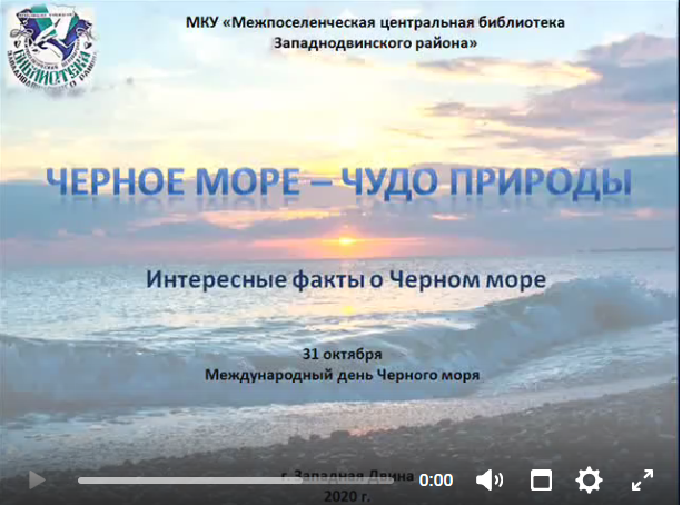 О том какие еще тайны скрывает Черное море расскажет видеоролик "Черное море - чудо природы" Центральной библиотеки.
