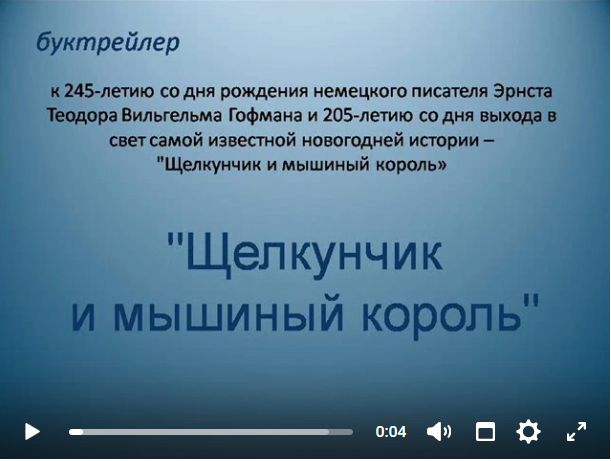 К юбилею писателя сотрудники Ильинской сельской библиотеки подготовили буктрейлер «Щелкунчик и Мышиный Король», который предлагают вашему вниманию.