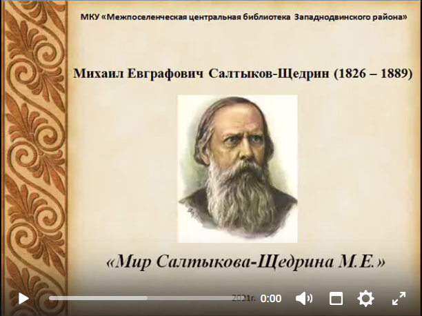 195 лет со дня рождения писателя Михаила САЛТЫКОВА-ЩЕДРИНА